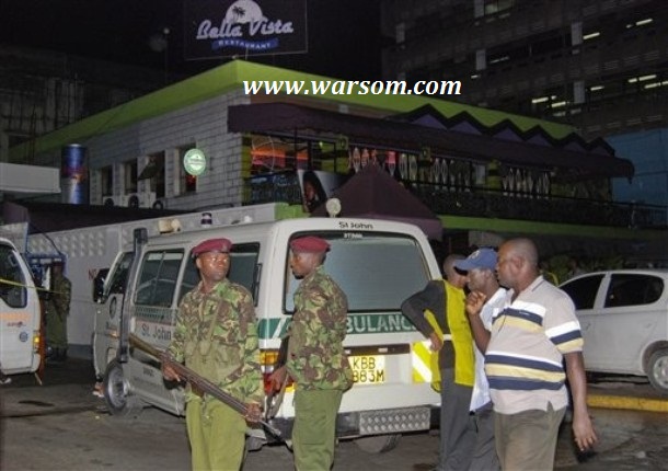 Booliiska dalka Kenya ayaa sheegay in hal qof uu ku dhintay, shan qof oo kaelna ay ku dhaawacmeen weerar saddex bambaano oo lagu weeraray xalay hoteel lagu caweeyo oo ku yaalla magaalada Mombassa ee dalka Kenya.