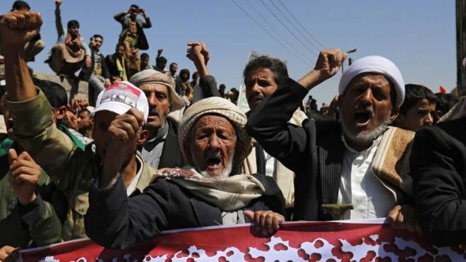 Kumanaan qof ayaa ka qeyb qaatay bannaan bax looga soo hor jeedo duqeymaha xulufada Sacuudigu ka wado dalka jaarka ah ee Yemen.