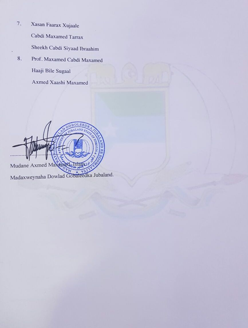 Jubaland oo soo bandhigtey xubnaha ku tartamaya Aqalka sare iyo tirada ay ka koobanyihiin.