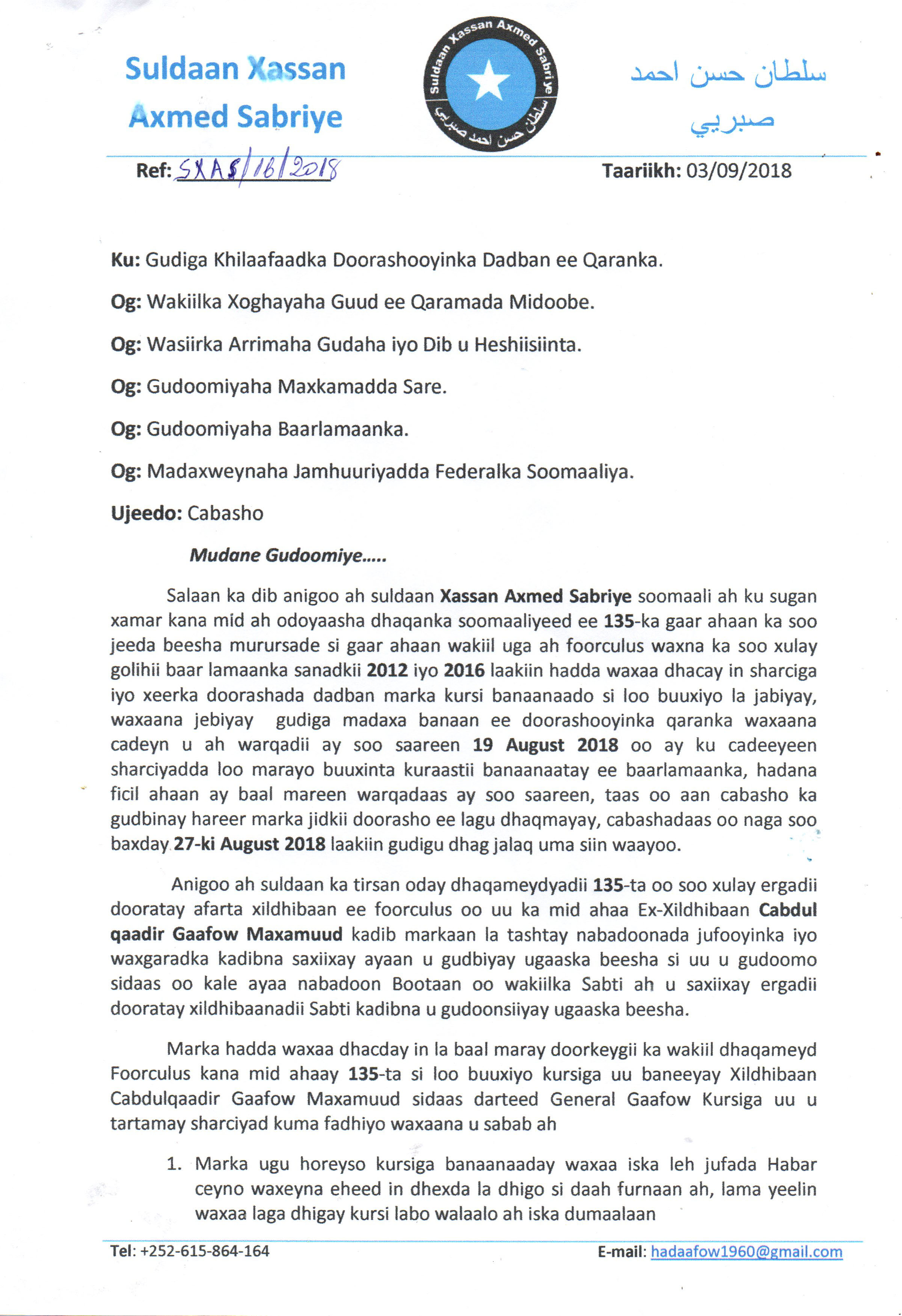 Wararkafacebook.comWararka Caalamka Suldaanka Beesha Murasade Oo Wax Kama Jiraan Ku Tilmaamay Doorashada Kursiga Xildhibaanimo Ee C/llaahi Gaafow By Warsom - September 4, 2018 0 826 Facebook Twitter WhatsApp Linkedin