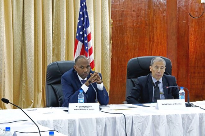 Safiirka Dalka Mareykanka ee Soomaaliya iyo R/wasaare Xasan Cali Khayre oo Ka Qayb Galey Shir Muqdisho Ka Dhacey Amnigana Looga Hadlayey.