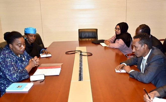 Wasiirka Arrimaha Dibadda iyo Iskaashiga Caalamiga ee Soomaaliya, Axmed Ciise Cawad ayaa la kulmay Wasiirka Arrimaha Dibadda Kenya,Monica Juma, kulan doceed dhinac socda Shirka gaarka ah ee 20aad ee Golaha Fulinta ee Midowga Afrika oo ka furmay Addis Ababa.