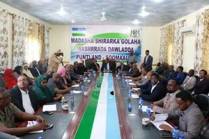 Madaxweynaha cusub ee Puntland, Siciid Cabdullaahi Deni ayaa maanta guddoomiyaha shirka golaha wasiirrada, iyadoo uu dhinac fadhiyay madaxweynaha xilka ka dagaya ee Cabdiweli Gaas.