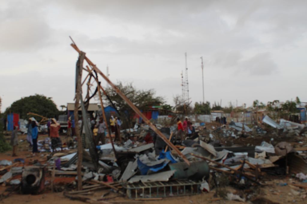 Sawirro laga soo qaaday Goobta duqeynta lala bartilmaameedsaday ayaa muujinayay burburka Guryo ay lahaayeen dad Shacab ah iyo goobo Ganacsi.