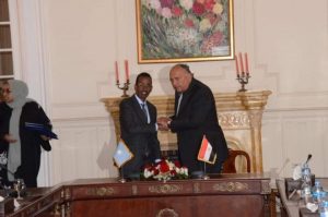 Wasiirka Arrimaha Dibadda iyo Iskaashiga Caalamiga, Mudane Danjire Axmed Ciise Cawad ayaa Khamiistii kula kulmay magaalada Qaahira dhiggiisa Masar Mudane Sameh Shoukry.