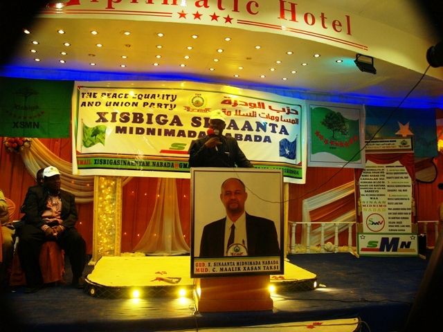Xisbigaan cusub oo lagu magacaabo Xisbiga Sinnaanta Midnimada Nabadda Soomaaliya ayaa waxaa furitaankiisa khudbado kala duwan ka jeediyay qaar ka mid ah ka soo qeyb galayaasha, kuwaasi oo iyagu siyaabo kala duwan uga hadlay xisbigaan cusub iyo howlaha looga fadhiyo oo ka tarjumeysa saddexda xaraf ee uu ka kooban yahay.