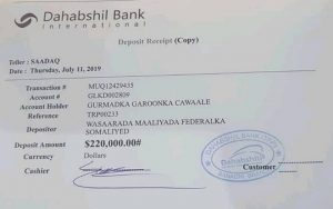 Jacfar, ayaa sheegay in ra’iisul wasaaraha uu markiiba u xaqiijiyay in dhaqaalaha  xukuumadda ballanqaaday inay soo gaarayso guddiga,wuxuuna inta ku daray galinkii dambe ee khamiistii shalay inay si rasmi ah lacagta labo boqol iyo labaatan kun oo dollar ah ay ku soo dhacday qasnadda guddiga dib u dhiska garoonka.