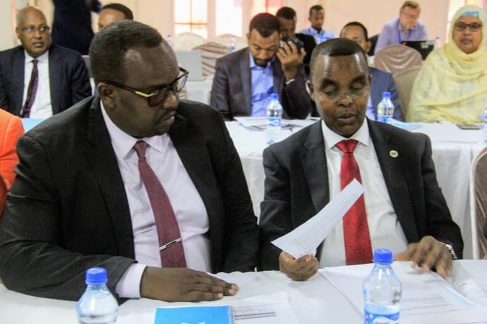 Wasiirka Wasaaradda Arrimaha Dastuurka Xukuumadda Federaalka Soomaaliya mudane Saalax Axmed Jaamac oo furay kulankani ayaa ka hadlay dib-u-eegista Dastuurka iyo kaalinta maqaamka Muqdisho.