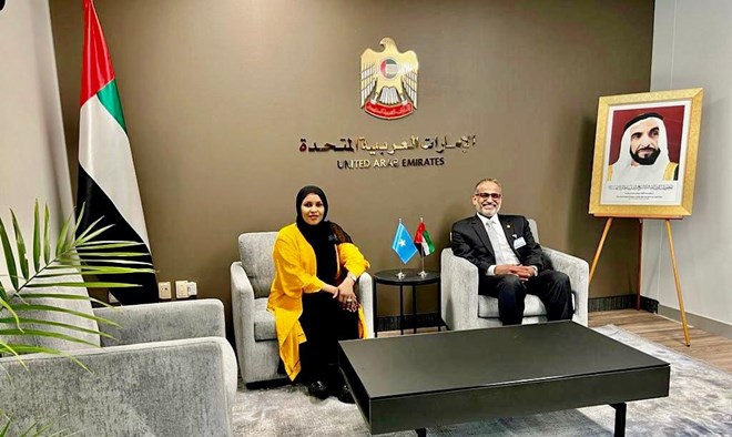 Wasiirka Gaadiidka iyo Duulista Hawada Xukuumadda Federaalka Soomaaliya , Xil.Fardowsa Cismaan Cigaal ayaa kulan doceed la yeelatay dhigeeda Dalka Qatar, Mudane Jassim Saif Ahmed Al-Sulaiti iyo Madaxweynaha Hay’adda Duulista Hawada Dalka Imaaraadka Carabta, Sh. Ahmed bin Saeed Al Maktoum.