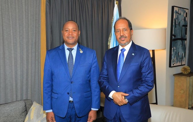 Xoghayaha Guud ee dallada bulshada bariga Afrika ee EAC, Peter Mathuki ayaa wada hadal la yeeshay Madaxweynaha Soomaaliya, Xasan Sheekh Maxamuud, oo ay ka wada hadleen Shirka Midowga Afrika.