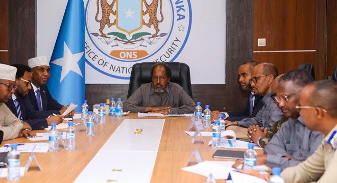 Madaxweynaha dowladda Fedaraalka Soomaaliya Xasan Sheekh Maxamuud ayaa shir guddoomiyay shirka Golaha Amniga Qaranka oo ay ka qeyb galeen madax kala duwan uu ka mid yahay Raysal wasaare Xamse Cabdi Barre iyo taliyaasha ciidamada dowladda Soomaaliya.