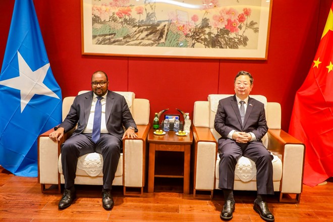 The Chinese Ambassador to Somalia, Amb. Wang Yu, met with the leader of SSC-Khaatumo, Abdikadir Ahmed Aw-Ali, to discuss strengthening bilateral relations and cooperation.