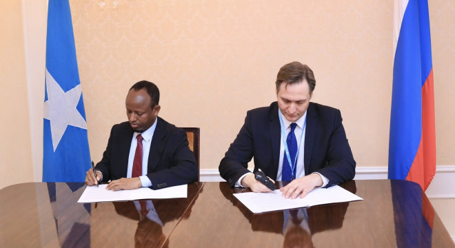 The Minister of Health and Social Welfare of the Federal Government of Somalia, Dr. Ali Haji Adam, and the Deputy Minister of Health of the Russian Federation, Oleg Salagay, signed a Memorandum of Understanding (MoU) in Geneva to strengthen cooperation in the field of health between the two countries.