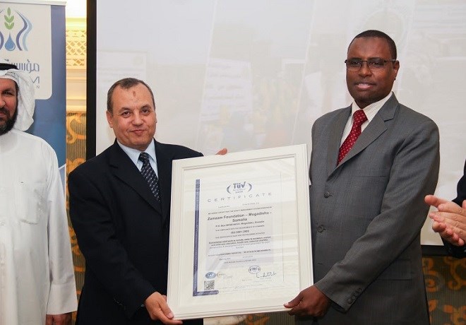 Xaflad ballaaran oo ay ka Qayb-galeen Madax ka kala socda Bangiga Horumarinta Islaamka, Ururka Iskaashiga Islaamka, Wakiillo ka socda Hay’ado Deeq-bixiyaal ah oo Fadhigoodu yahay Sucuudiga iyo Ganacsato; ayaa Hay’adda Zamzam lagu guddoonsiiyay SHAHAADADA TAYADA IYO MAAMUL WANAAGGA EE CAALAMIGA AH OO LOO YAQAANNO; ISO 9001:2008.