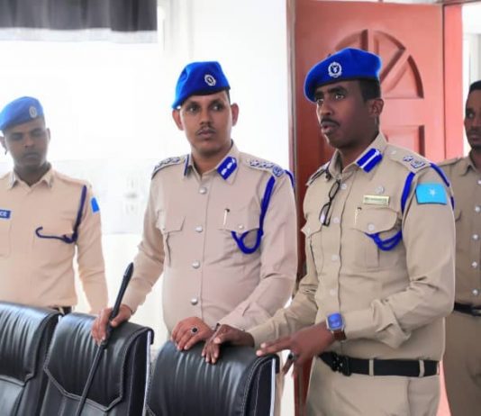 Taliyaha ciidanka boliiska Soomaliyeed, Sareeye Guuto. Sulub Axmed Firin ayaa kormeer kedis ah ku tagay qaar kamid ah saldhigyada booliiska ku leeyahay gobolka Banaadir, si uu ugu kuurgalo shaqooyinka ka socda saldhigyadaasi.